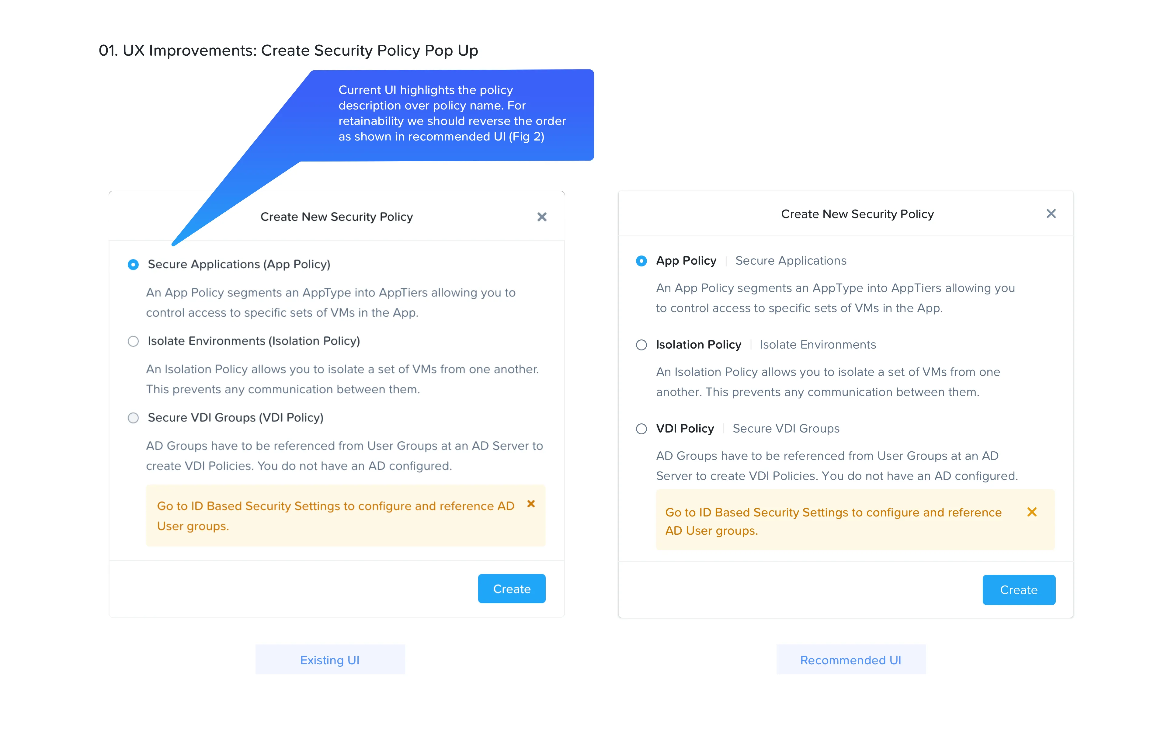 Application centric policy management